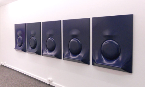 Im September 2010 eröffnete artplosiv seine Räume in Freiburg mit der Ausstellung »into the space« – einer Gegenüberstellung von Werken des Künstlers Agostino Bonalumi sowie des gerade erst wiederentdeckten und zum ersten Mal in diesem Umfang präsentierten Schweizer Künstlers Rolf Schneebeli. »into the space« widmete sich der Erweiterung des Bildraumes und bewegte sich mit den Werken Bonalumis und Schneebelis in einem Spannungsfeld zwischen Malerei, Relief und Kinetik.