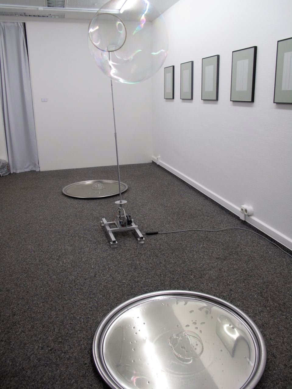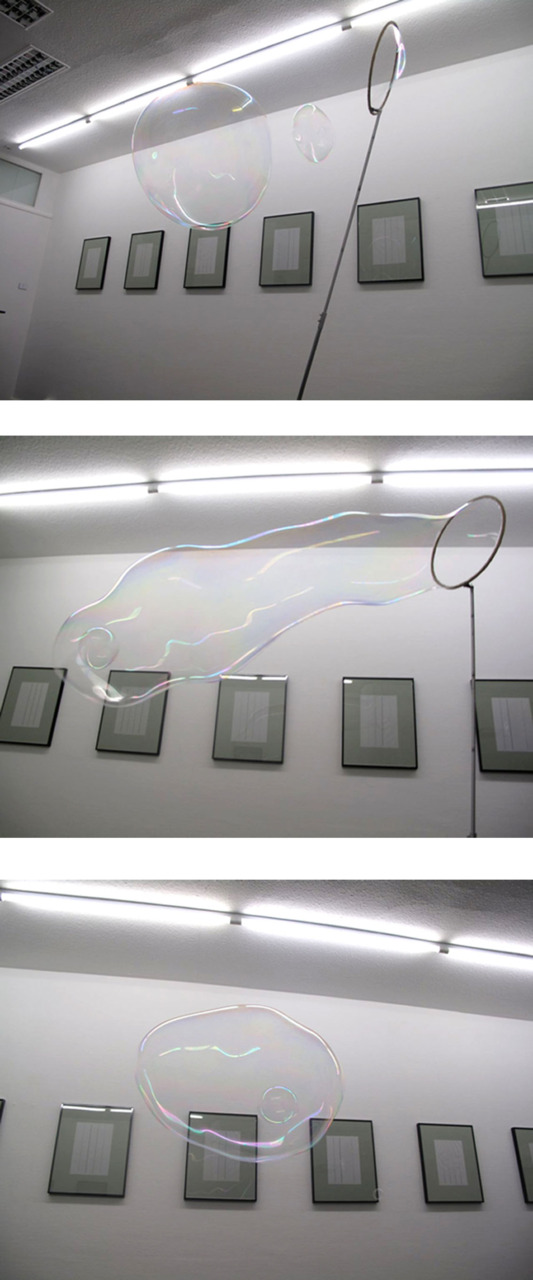 In der Kunst von Katrin Wegmann sind technische Apparaturen Auslöser und Schöpfer von Vorgängen und Prozessen: von Seifenblasen, die den Galerieraum füllen oder silbernen, spiegelnden Ballons, die sich in einer Choreografie heben und senken. Der Kunstraum artplosiv wurde im Rahmen der Ausstellung "POIESIS" zum Bühnenraum und der Betrachter zum Zuschauer ihrer prozessualen, raumfüllenden Inszenierungen. Katrin Wegemann erschafft Kunstwerke, die selbstschöpferisch der Vermittlung ästhetischer Erfahrungen dienen – POIESIS. Zwei Werke sind für die Ausstellung und mit Unterstützung von artplosiv entstanden. Ein Teil der Inszenierung wurde exklusiv im Rahmen der Eröffnung der Ausstellung am 25. März 2011 uraufgeführt.